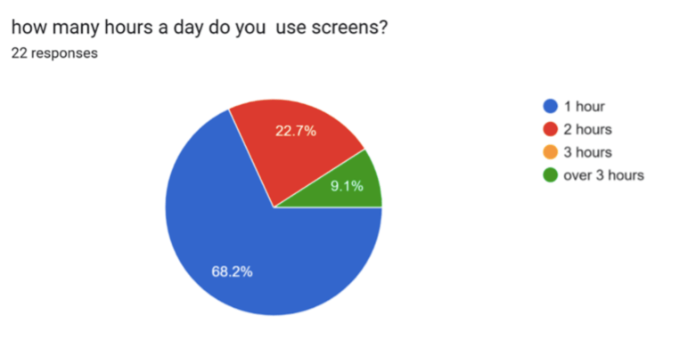 - Half of the students have got a mobile phone and most of them spend one hour a day on screens.